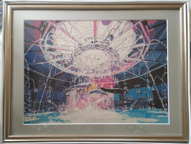 クロスステッチ刺繍作品の展示、デモンストレーション