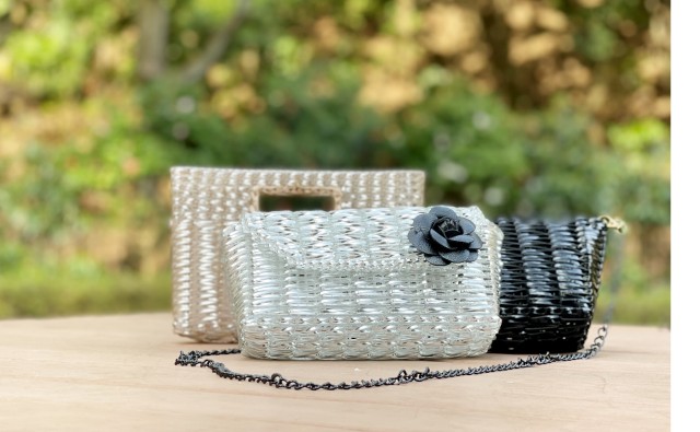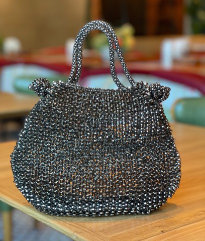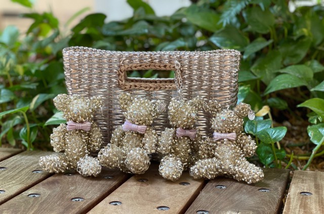 チェーンやタッセルをつけてゴージャスに仕上げていきます。チェーンをそのまま持ってミニバッグとして使ったり、バッグにつけて外付けチャームとしても使うこともできます。
