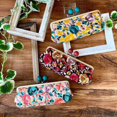 完成品見本の展示もしていますので、ネットショップで気になっていたがま口の形や大きさなどを実際にご覧ください。