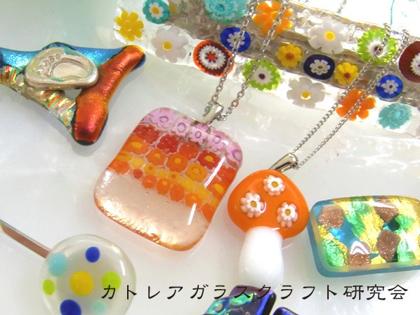 カトレアガラスクラフト研究会は、ベネチアンガラスのフュージング・インストラクターが所属する会です。会員が制作した、オリジナルのベネチアンガラス・アクセサリーや雑貨を販売します。