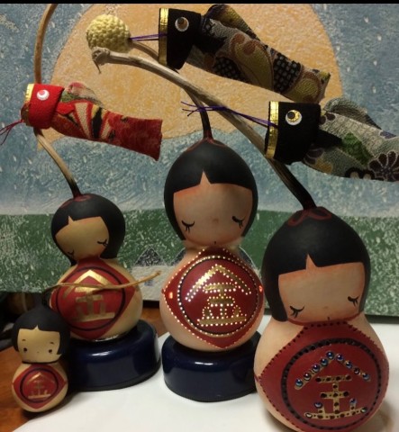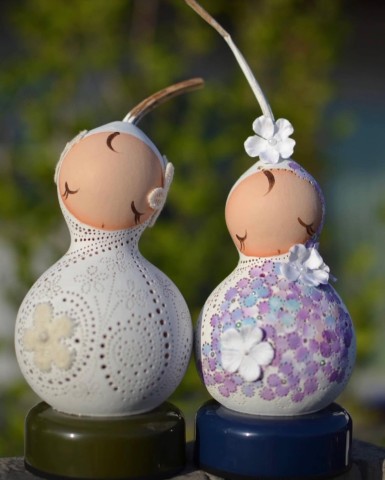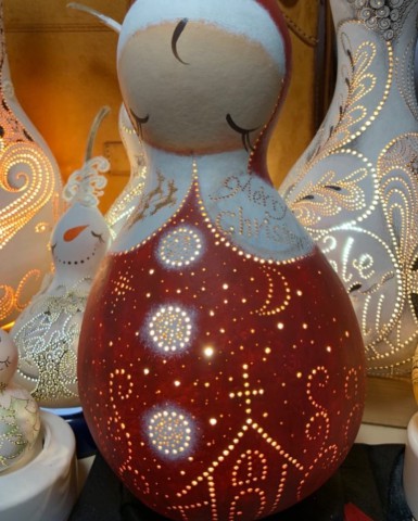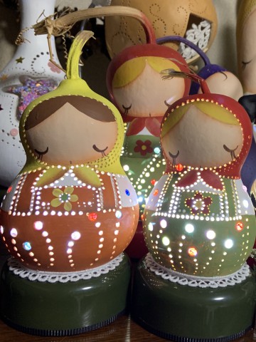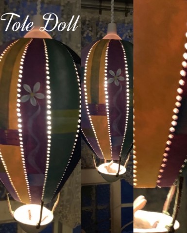 ペイントしたひょうたんに穴を開け ビーズを入れたりレースを付けたりして作るひょうたんランプ(カッシュドールランプ)作り